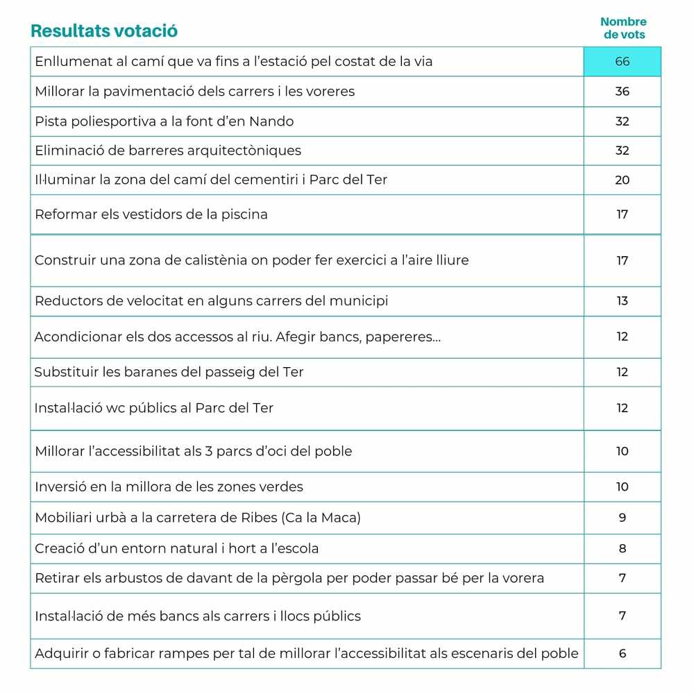RESULTATS: Segona posició amb 36 vots.